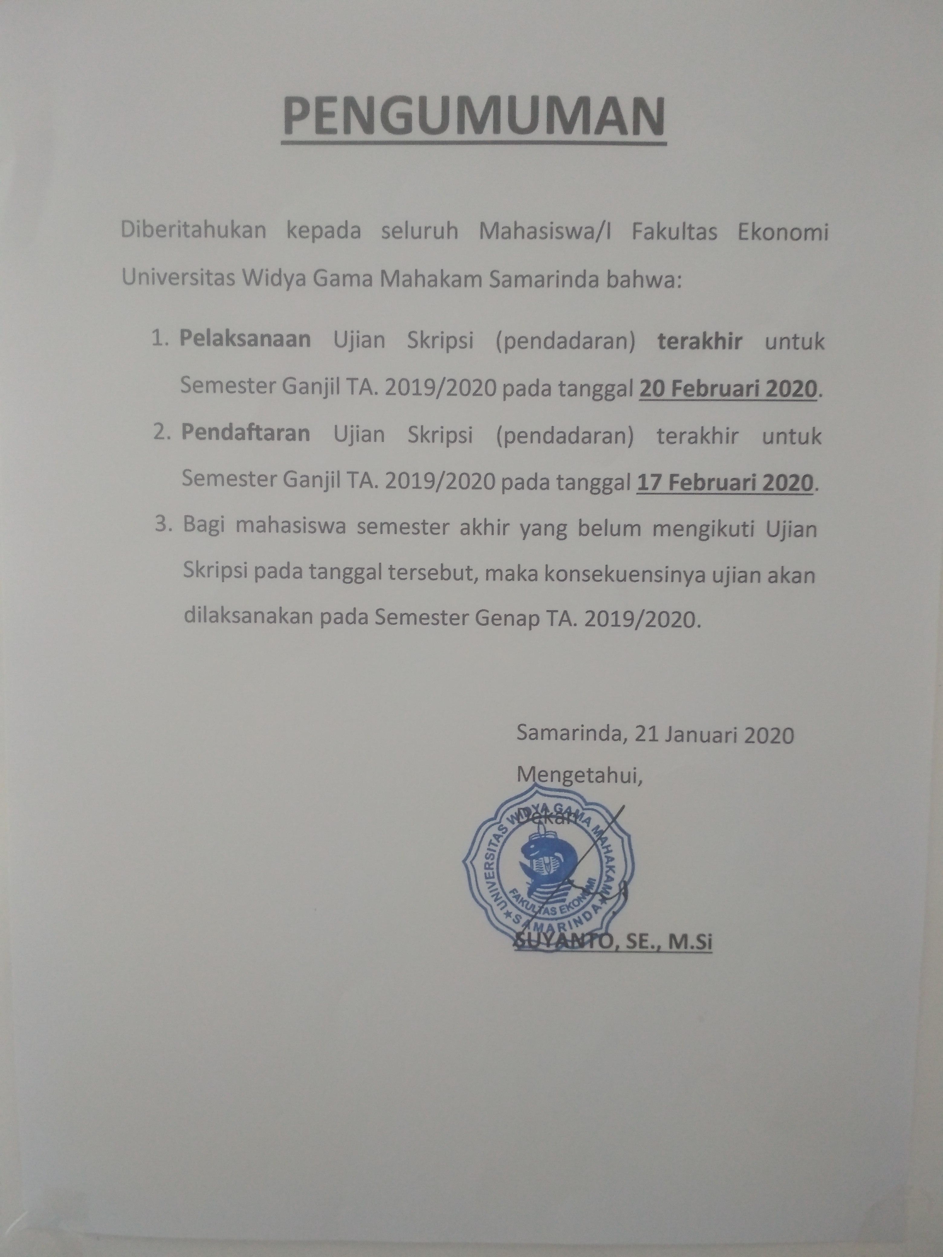 Pengumuman ujian skripsi (pendadaran) Smt Ganjil TA. 19/20 21 Jan 2020 Admin Pengumuman ujian skripsi (pendadaran) Smt Ganjil TA. 19/20