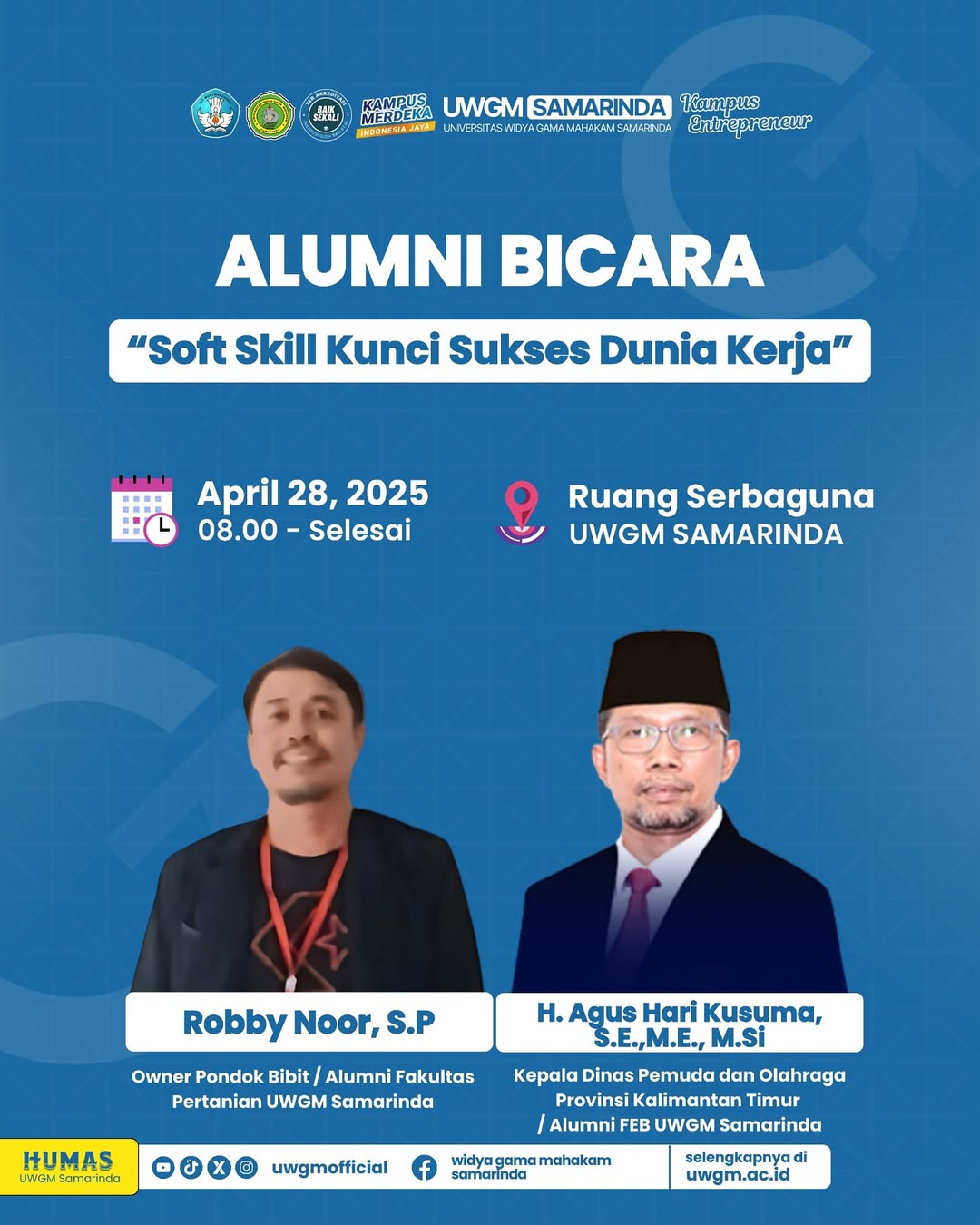 1. H. Agus Hari Kusuma, S.E., M.E., M.Si ( Kepala Dinas Pemuda dan Olahraga Provinsi Kalimantan Timur / Alumni FEB UWGM Samarinda )