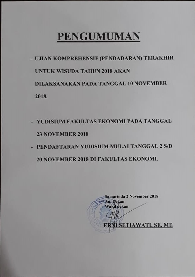 2. Yudisium Fakultas Ekonomi pada Tanggal 23 November dan Pendaftaran Yudisium mulai Tanggal 2 s/d 20 November 2018 di Fakultas Ekonomi